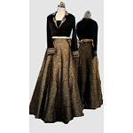 Distinctive Feature: The use of warm golden-hour lighting enhances the rich texture and detail of the outfit and surroundings.