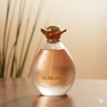 Intense backlighting creates a warm golden glow, enhancing the luxurious feel of the perfume. - What mood does the photography convey?
