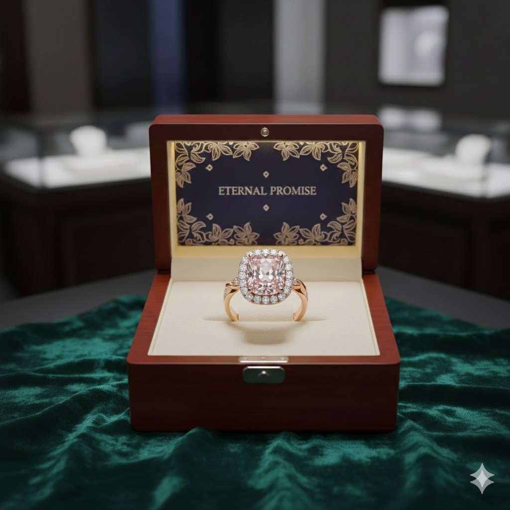 Distinctive Feature: The composition highlights both the jewelry’s intricate details and the luxurious texture of the presentation surface.