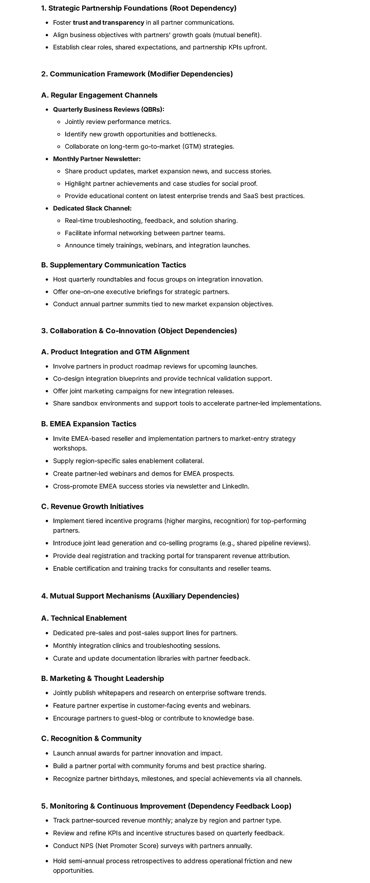 - Establish Metrics: Define KPIs for partner engagement, collaboration success, and mutual value creation.
